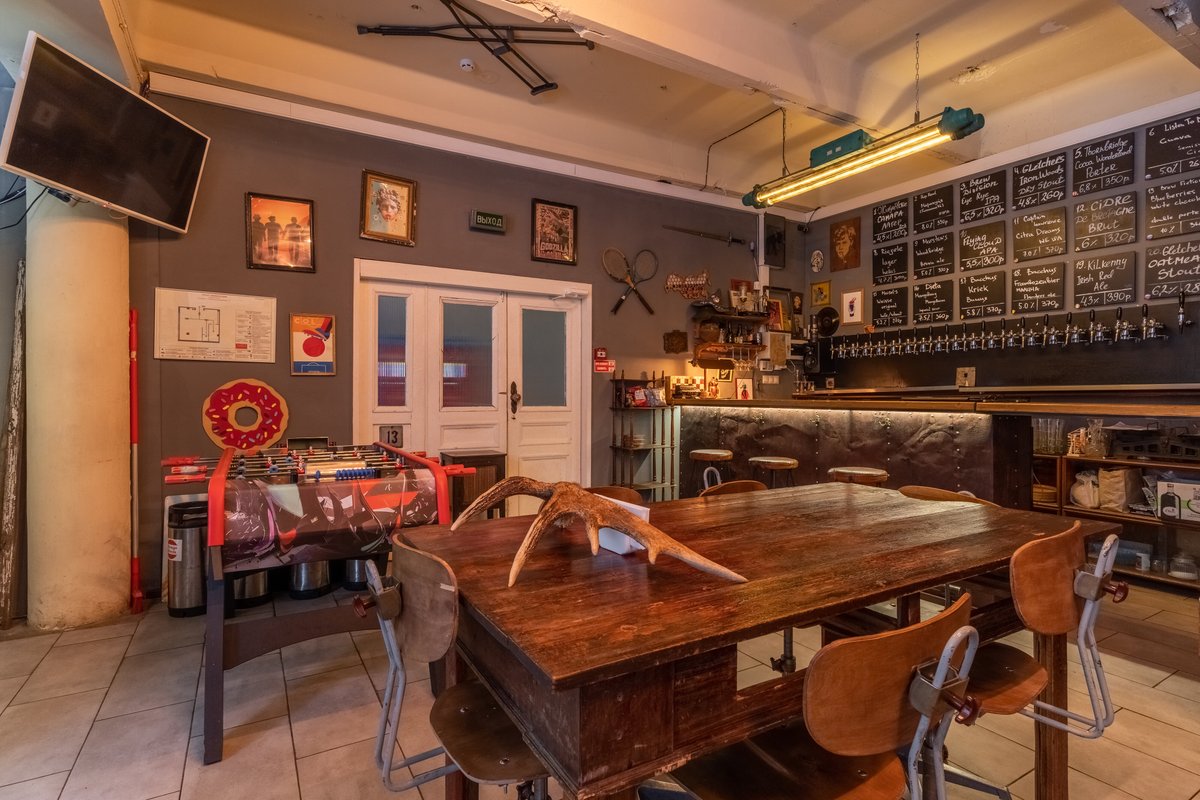 Отличное место с берлинским дизайном, но гораздо большим ассортиментом пива из разных стран. Есть крафт и классическое пиво, ещё азотные краны, например с Kilkenny. Атмосфера уютная, бармены приветливые. Есть кикер